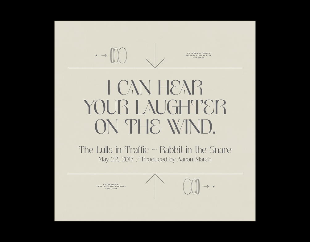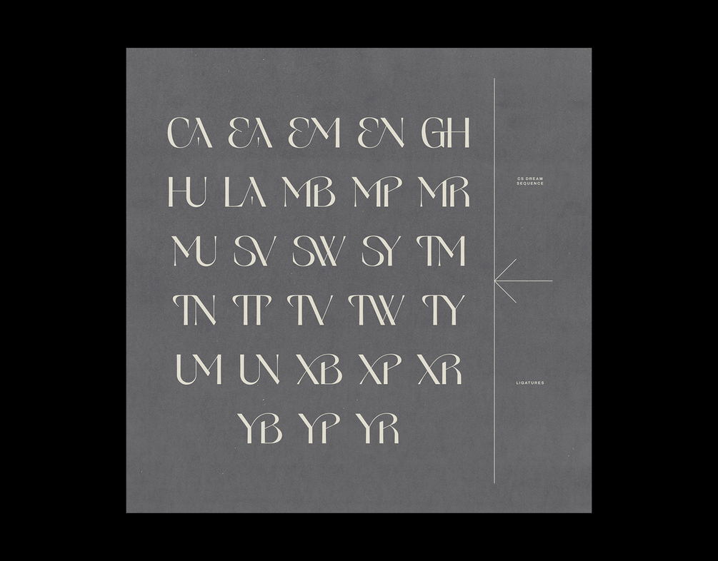 CS Dream Sequence is a modern display typeface ideal for use in headings for posters and magazines, merchandise designs, and logos. It was created with the intent of being experimental and organic, yet delicate and refined. It is available in 1 style and contains 249 glyphs, including a variety of stylistic alternates and discretionary ligatures.